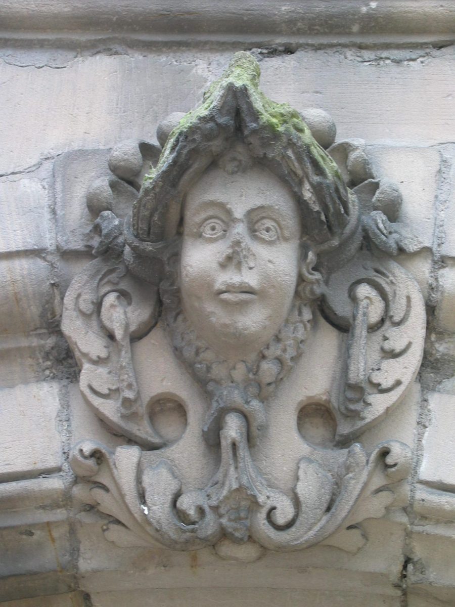 Des ornements « grotesques » représentant des visages ou des masques et également inspirés de l’Antiquité romaine, viennent décorer chacune des clés de voûtes des arcades. Prenez le temps de traverser la rue pour avoir une vue globale de ce beau bâtiment !